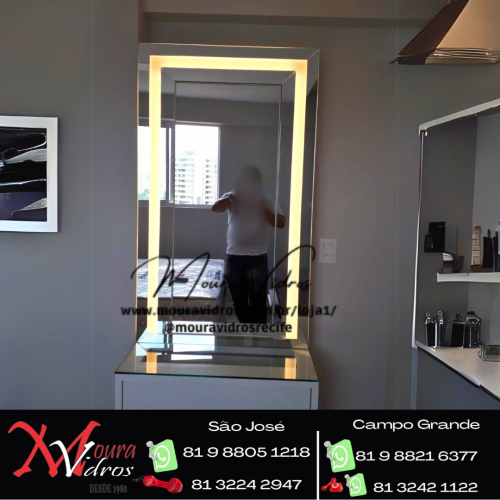 ESPELHO CENTRAL + LATERAIS DE ESPELHO COM FAIXA JATEADA PARA PASSAGEM DE LUZ